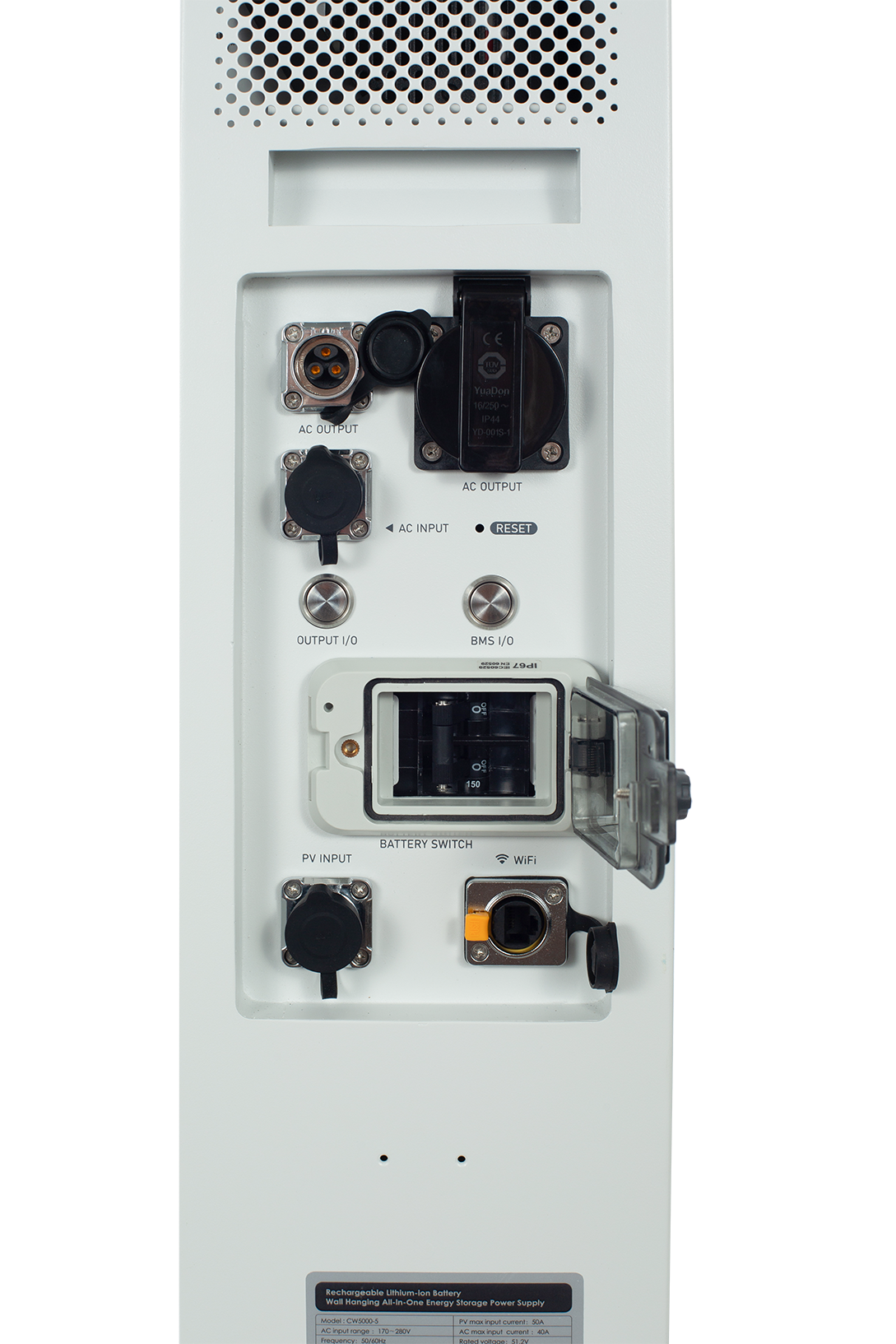 DW5000-5 – компактна система енергозбереження для дому та офісу Система енергозабезпечення DW5000-5 – це настінна зарядна станція, яка забезпечить безперервну роботу вашої техніки навіть під час відключень електроенергії. Ця система збереження енергії має потужний гібридний інвертор 5 кВт та Lifepo4 акумулятор 5 кВт\г. Ідеальна для дому, квартири чи невеликого офісу. Система заряджається на 90% за 90 хвилин, що дозволяє швидко відновити повну готовність до роботи.